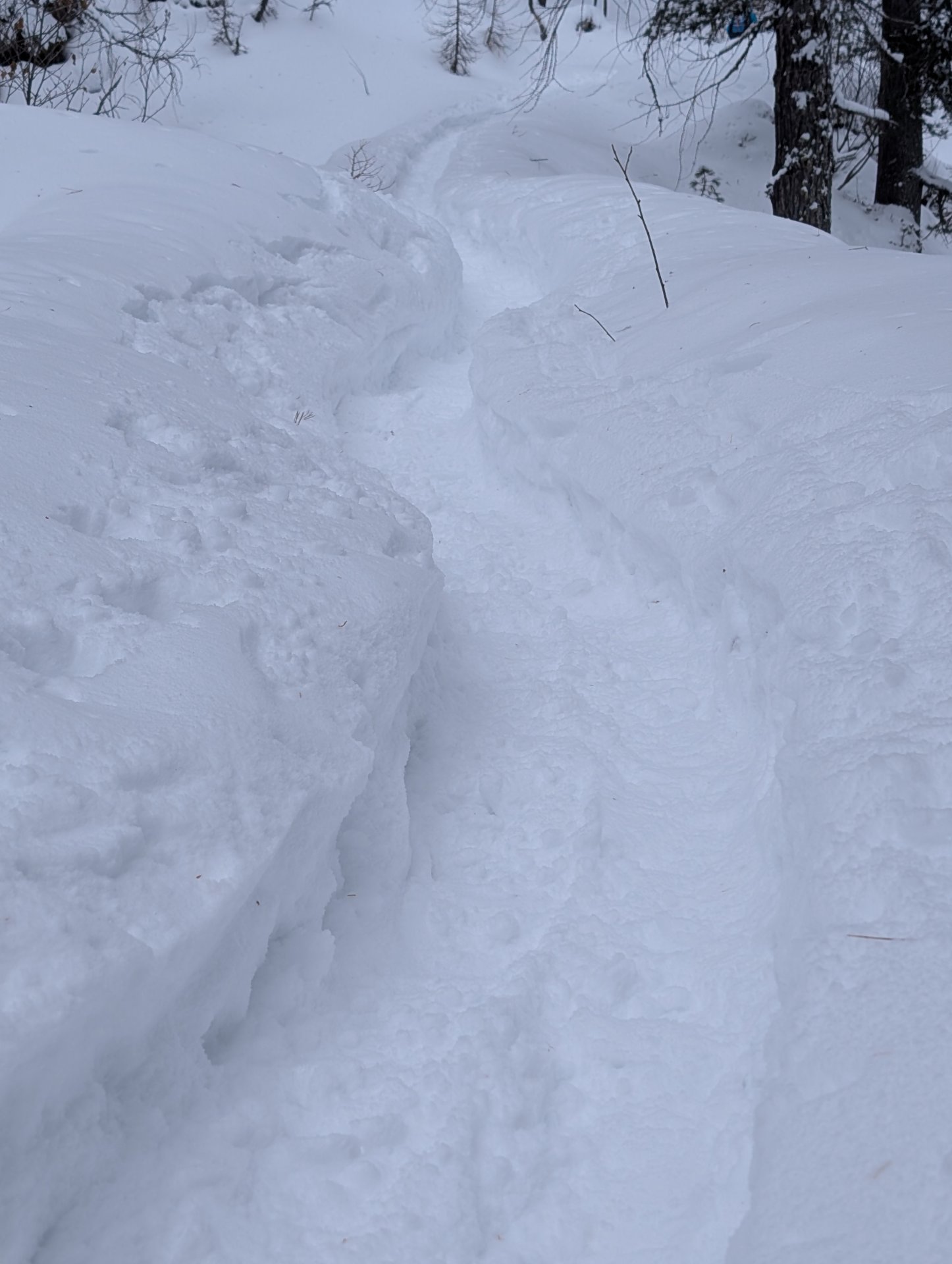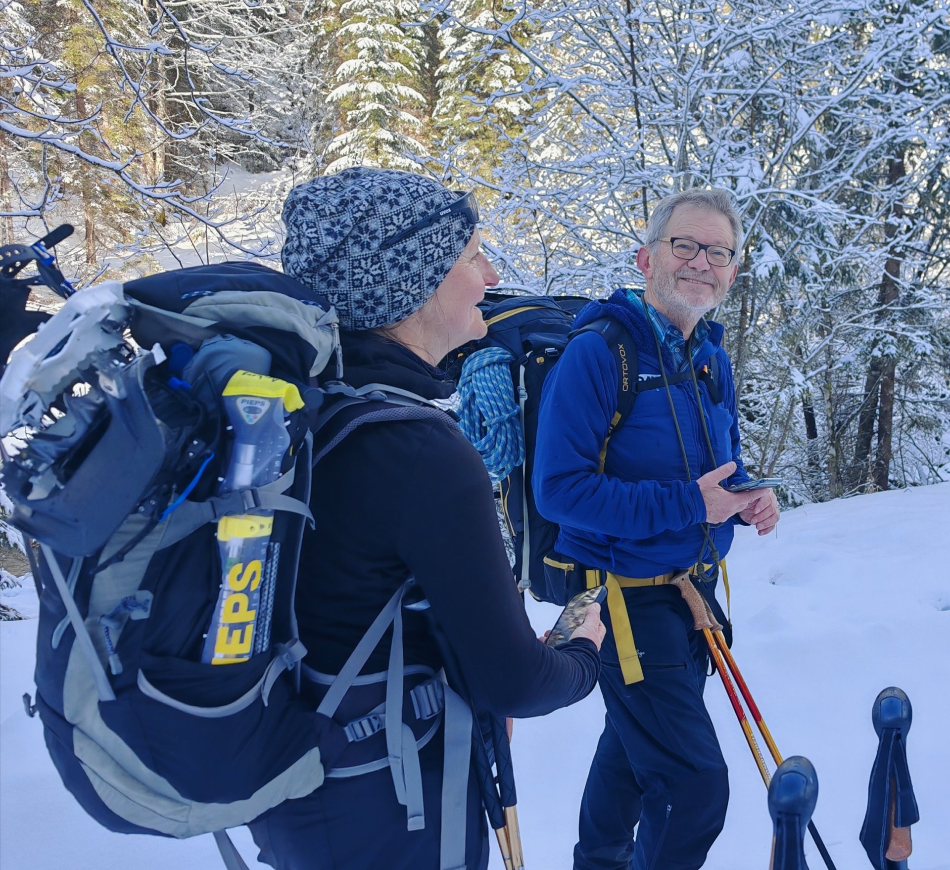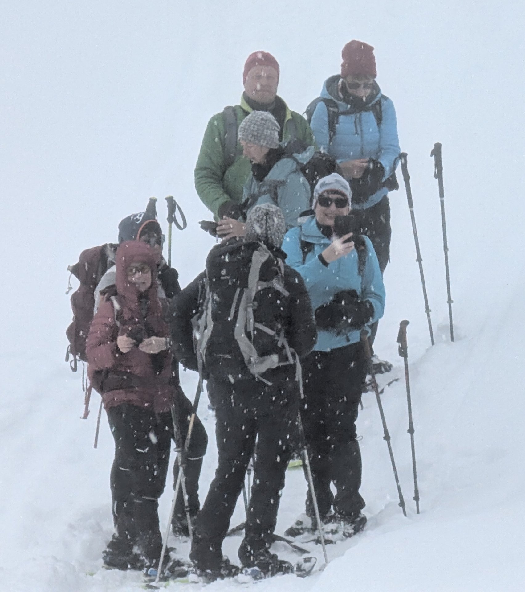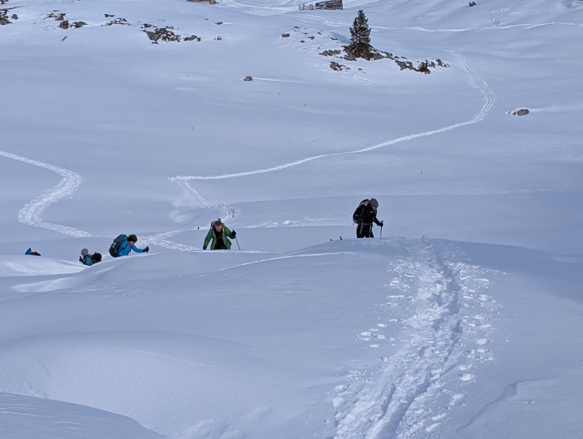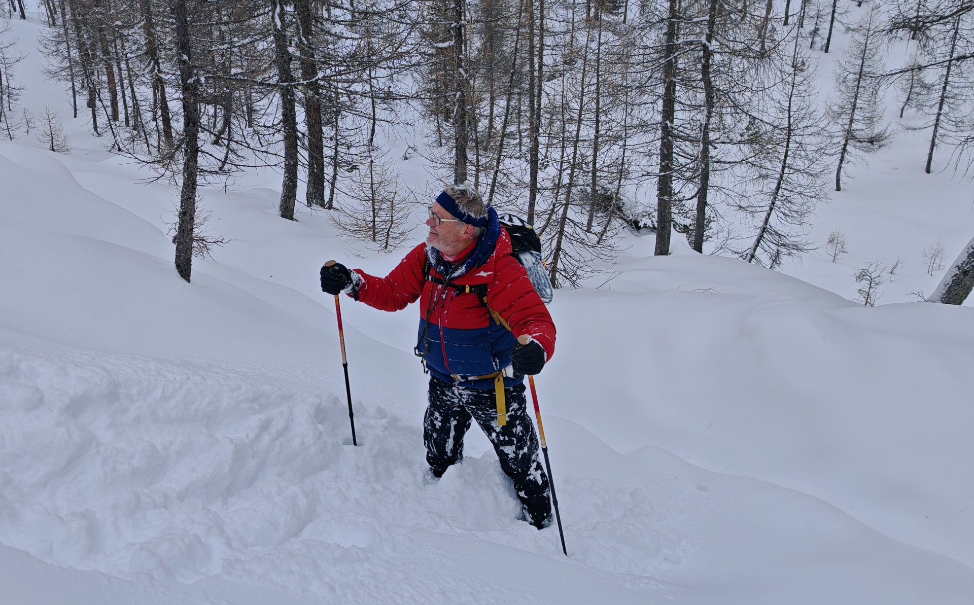 Mehrere von uns testeten unfreiwillig die Weichheit des Schnees und versanken prompt, zum Teil bis zur Hüfte, im tiefen Neuschnee.