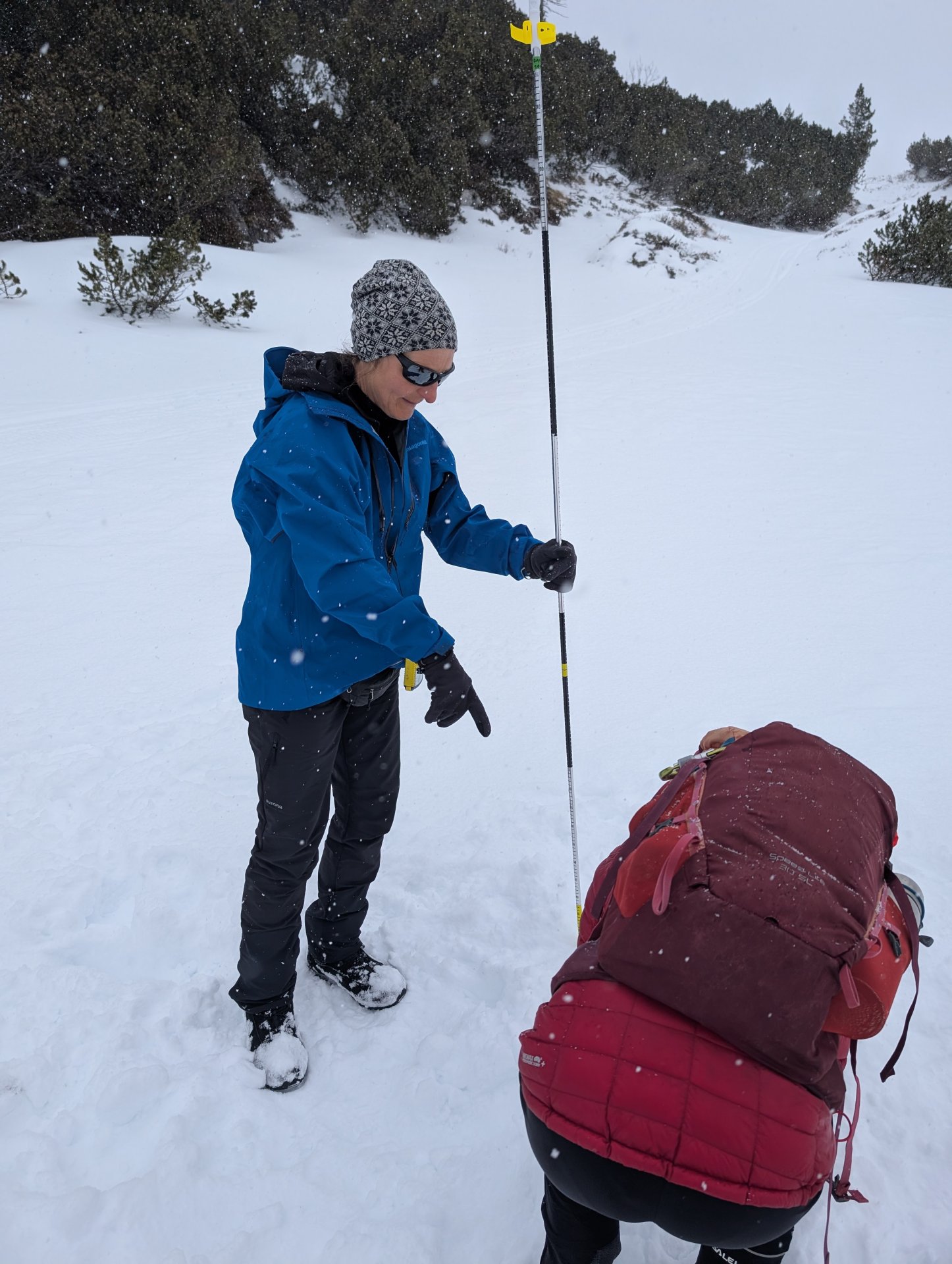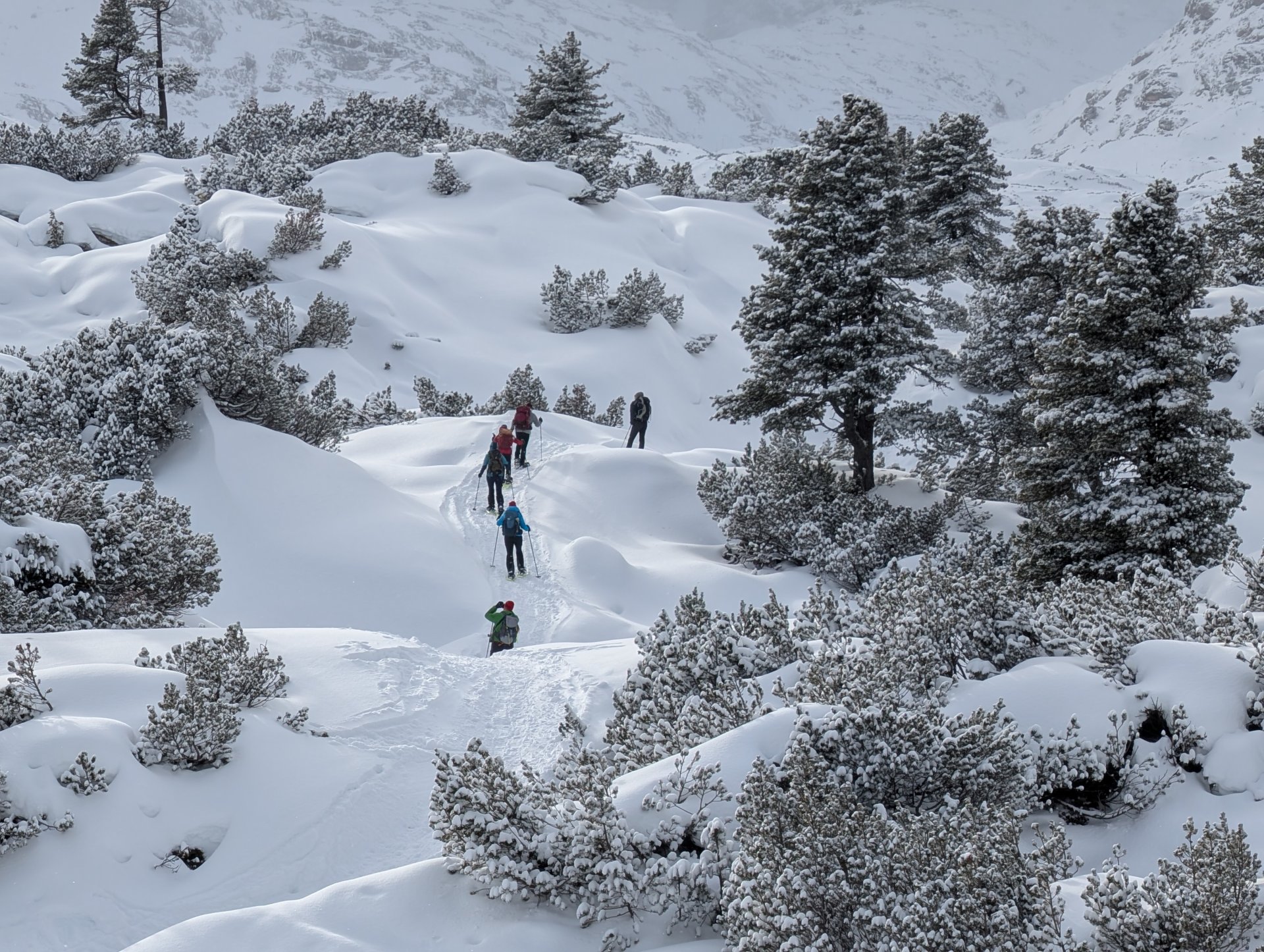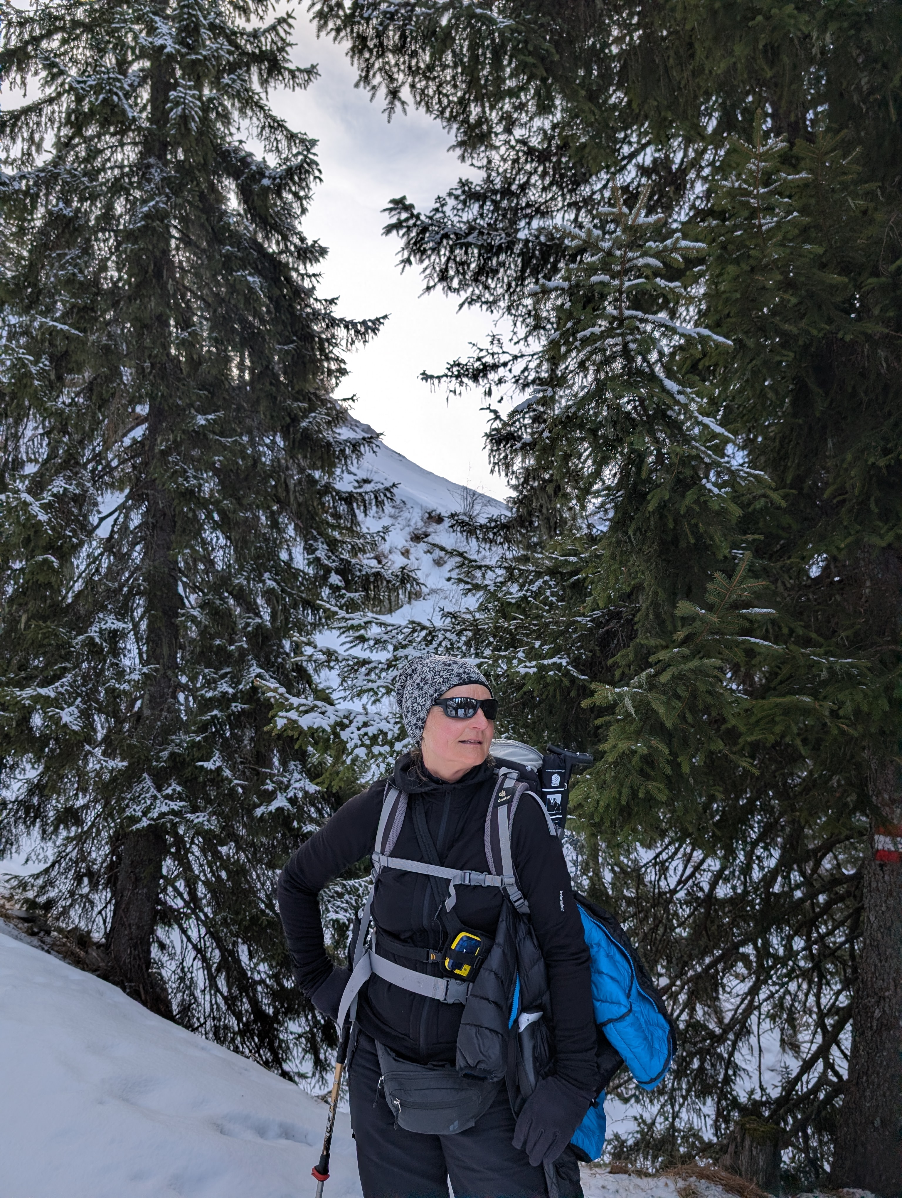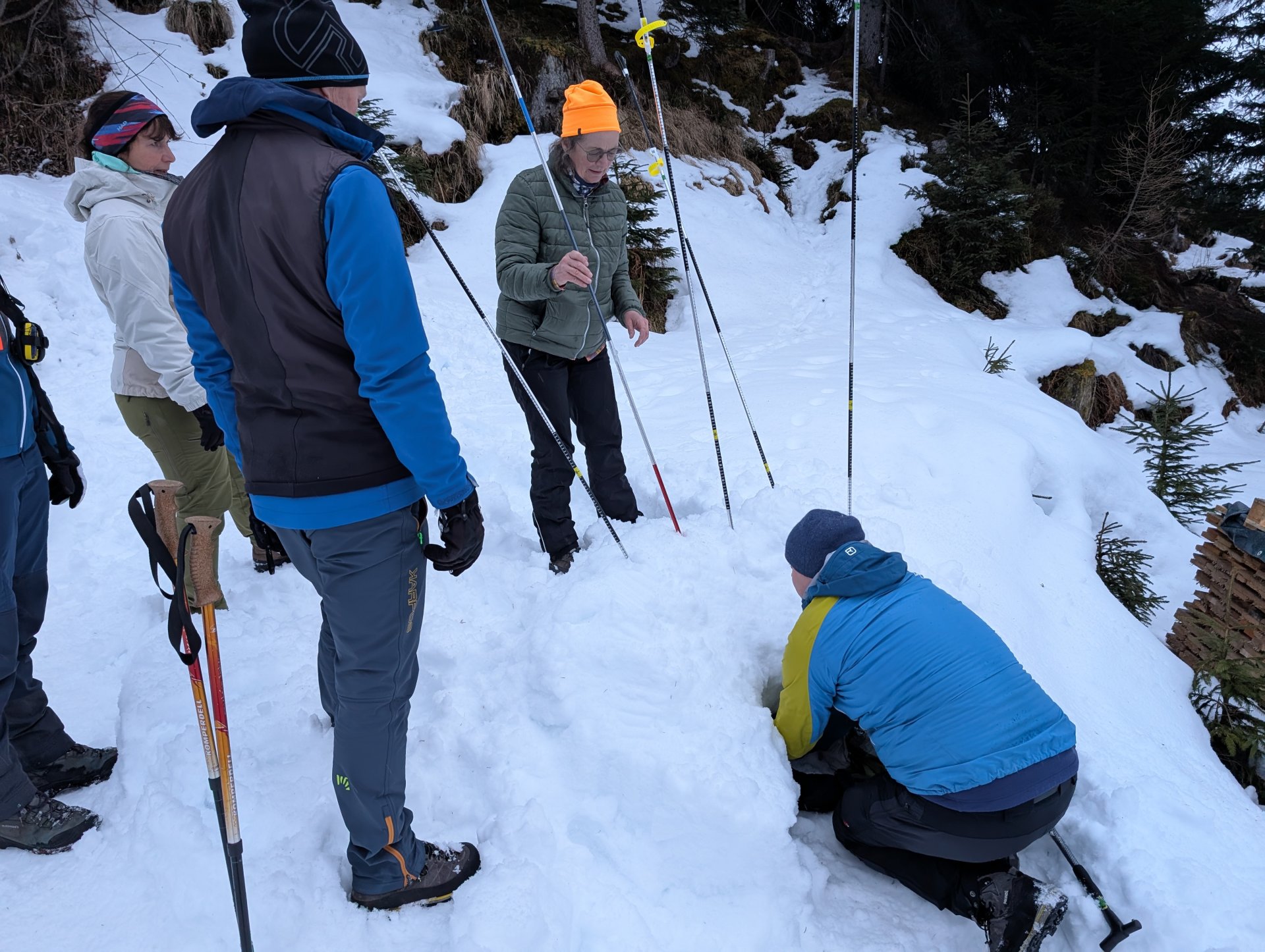 Mehrere von uns testeten unfreiwillig die Weichheit des Schnees und versanken prompt, zum Teil bis zur Hüfte, im tiefen Neuschnee.