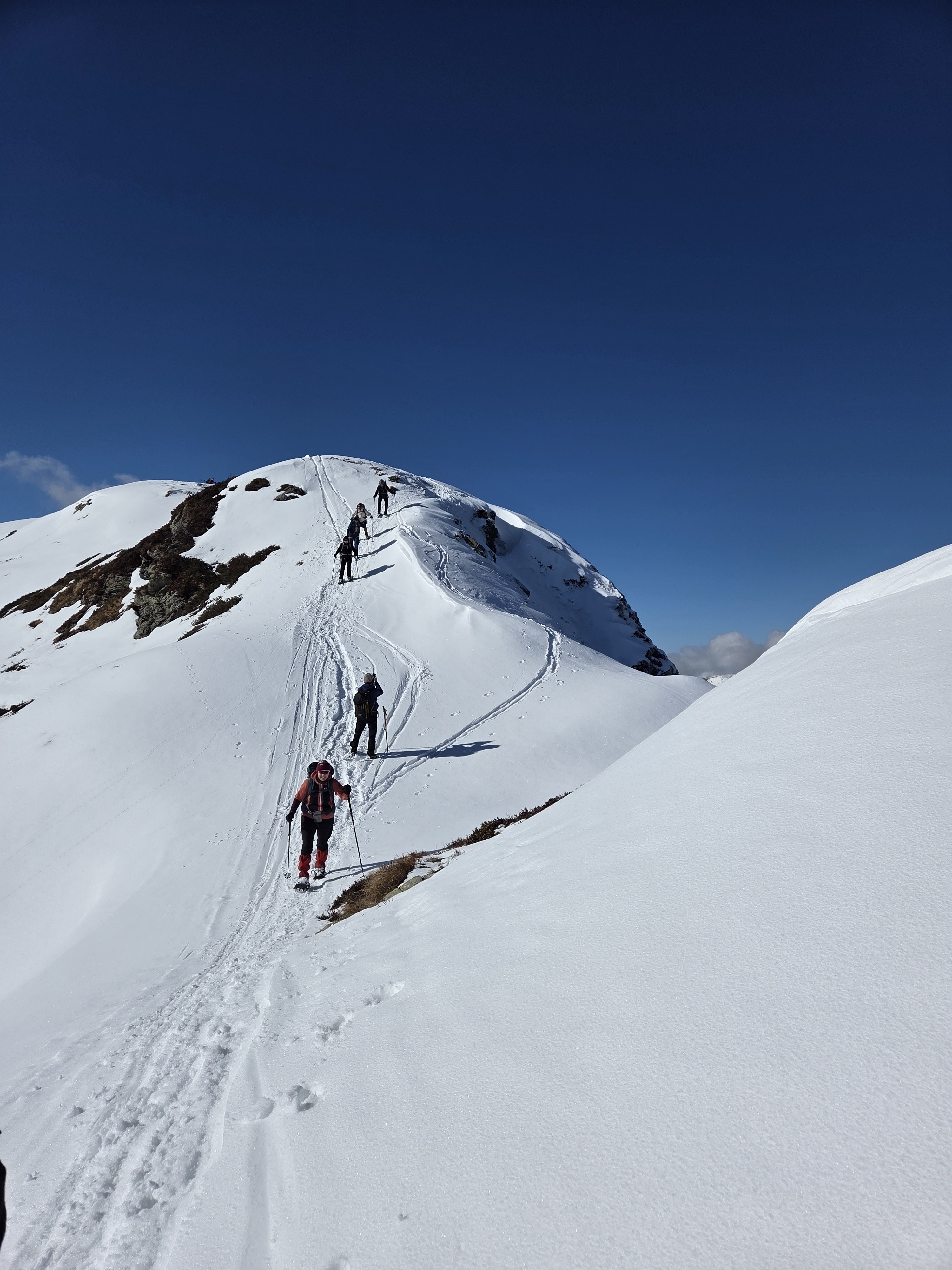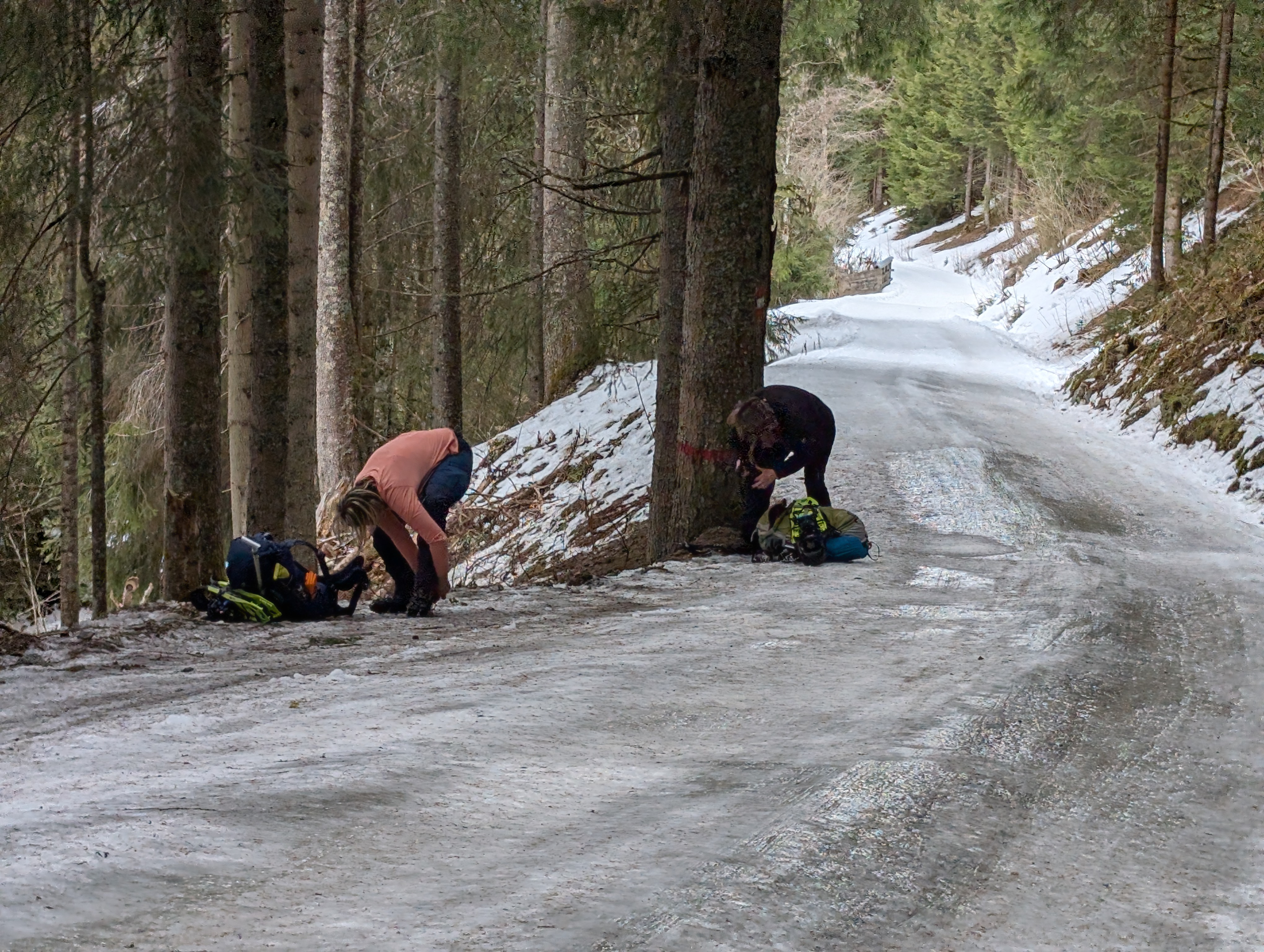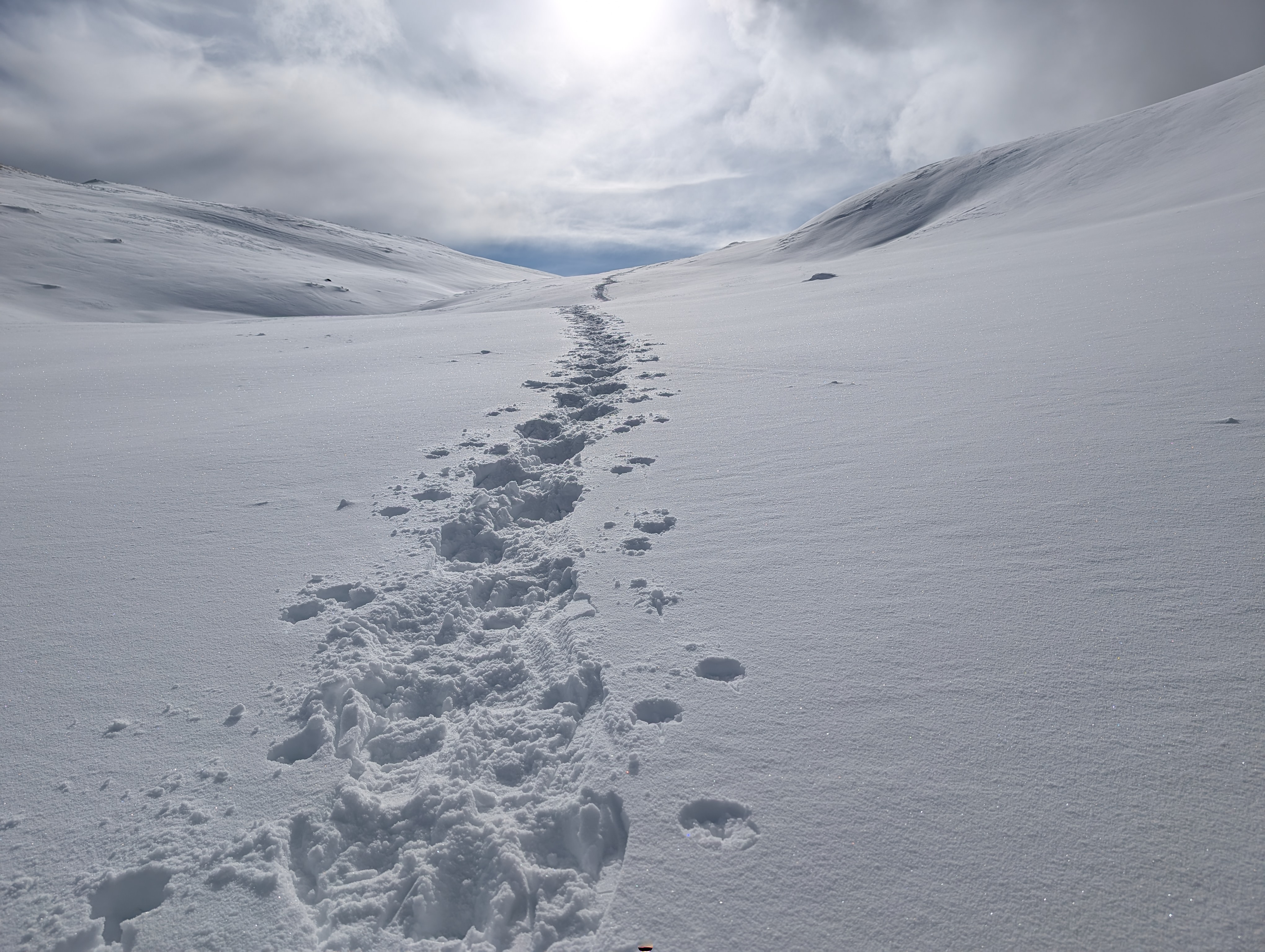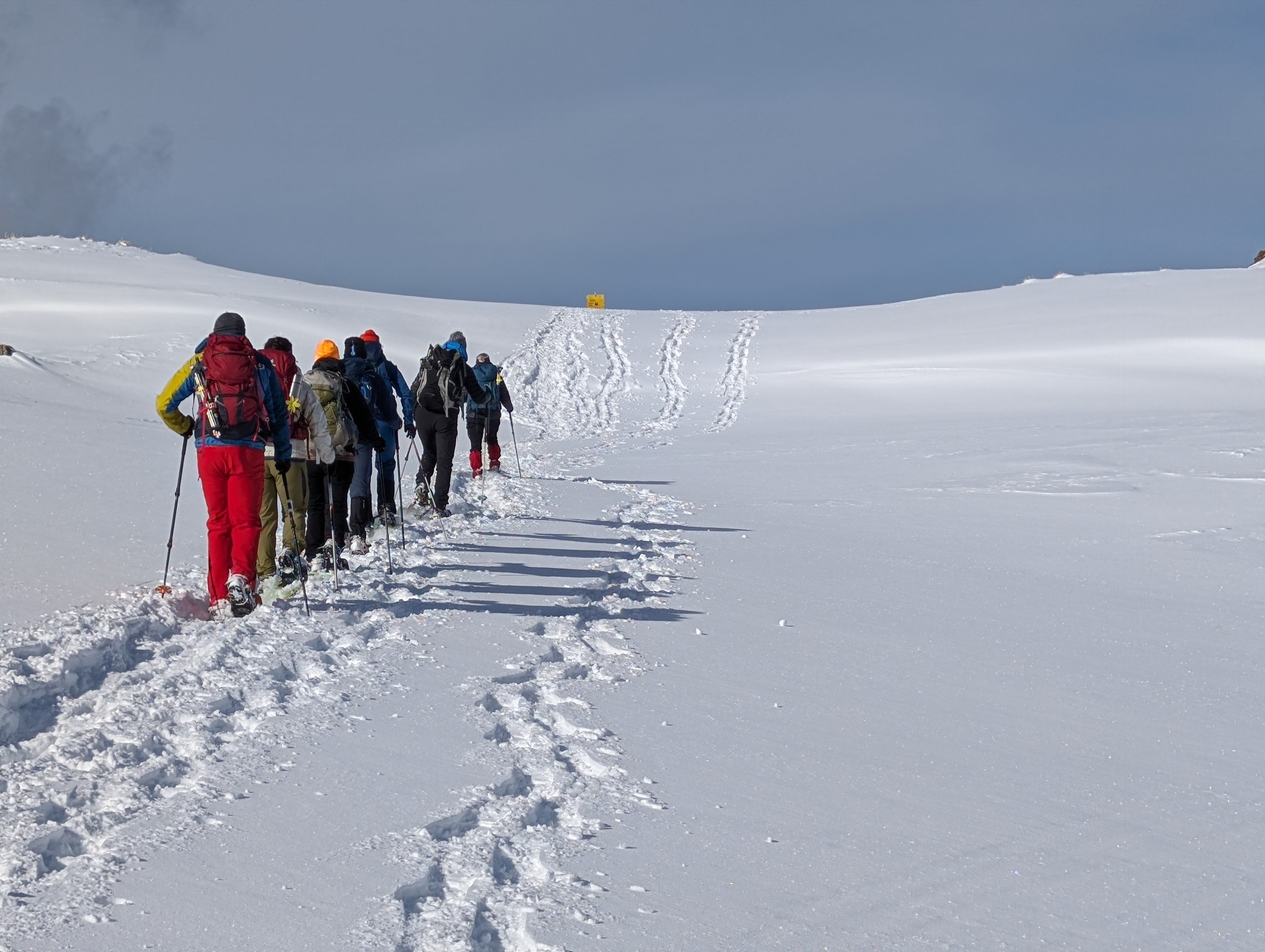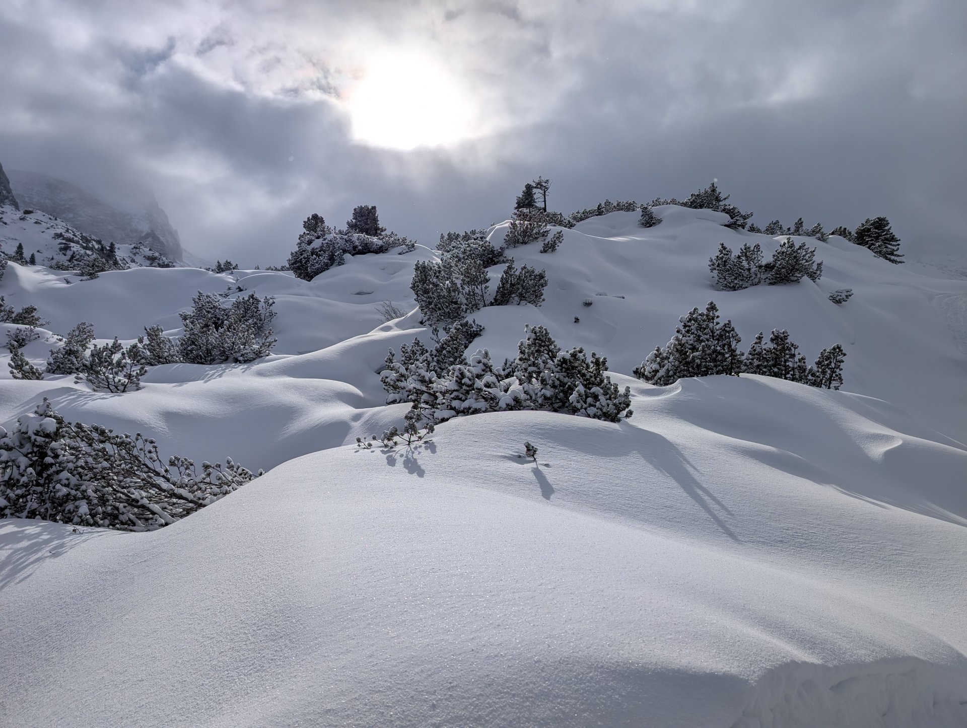 Mehrere von uns testeten unfreiwillig die Weichheit des Schnees und versanken prompt, zum Teil bis zur Hüfte, im tiefen Neuschnee.