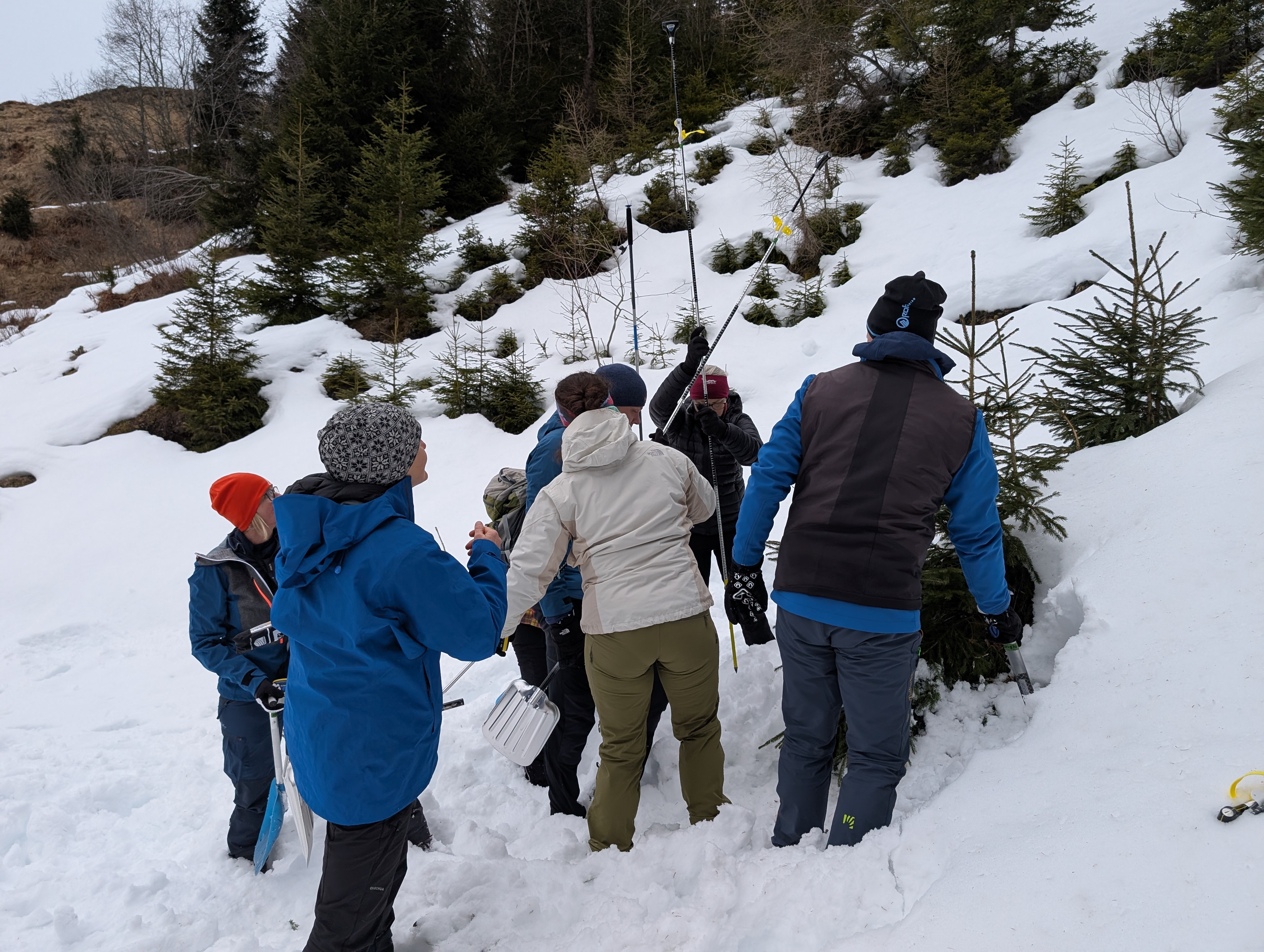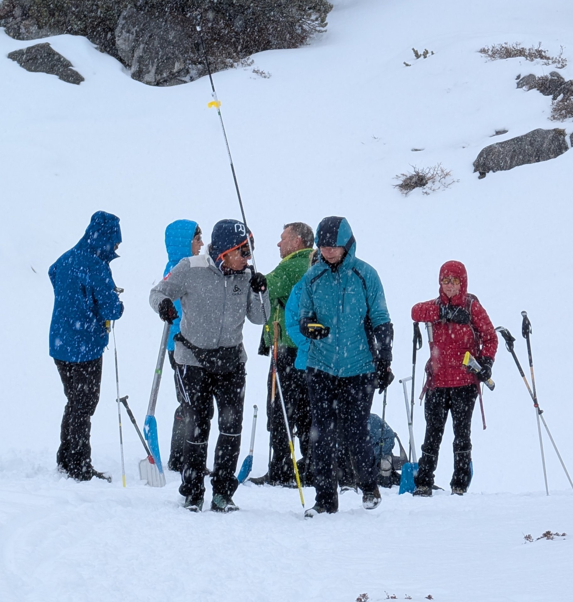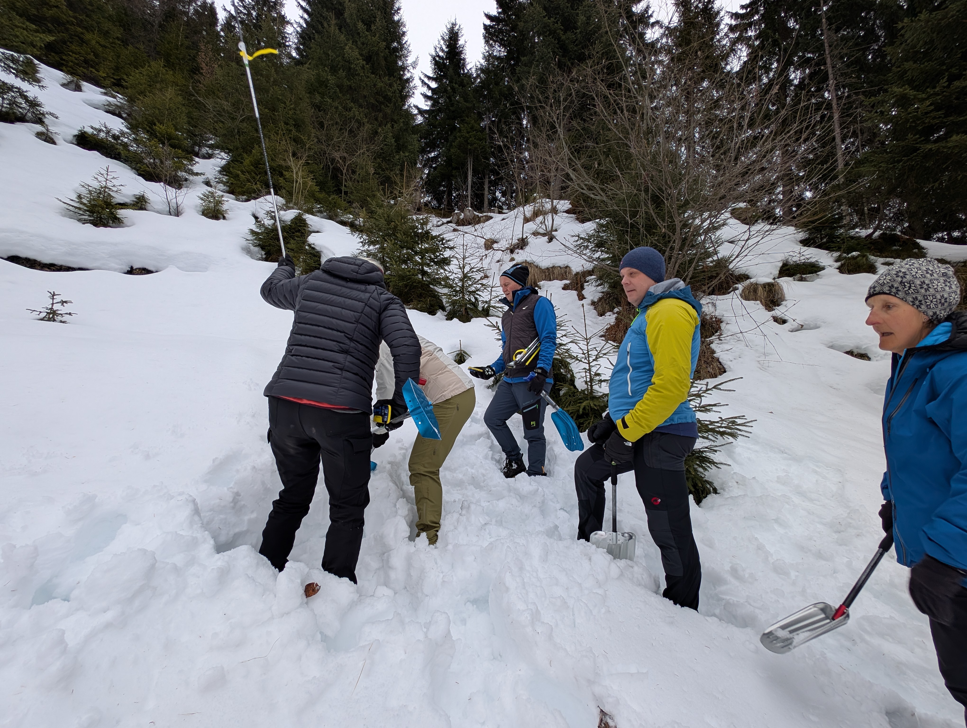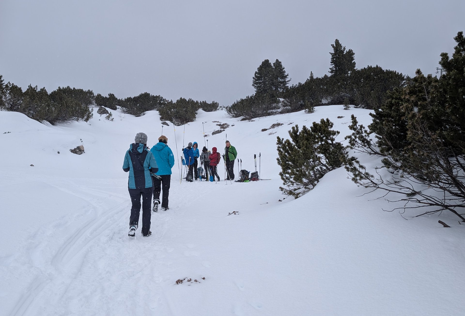 Den Abstieg zurück zum Wiesberghaus kannten wir schon. Da es noch früh am Nachmittag war, absolvierten wir unterhalb der Hütte noch die bei solchen Touren üblichen LVS-Übungen. Mit so vielen Hühnern auf einem Haufen nicht unbedingt ein leichtes Unterfangen, aber wir haben alle 'verschütteten' Personen gefunden und ausgegraben. Danach wärmten wir uns mit Frittatensuppe wieder auf.