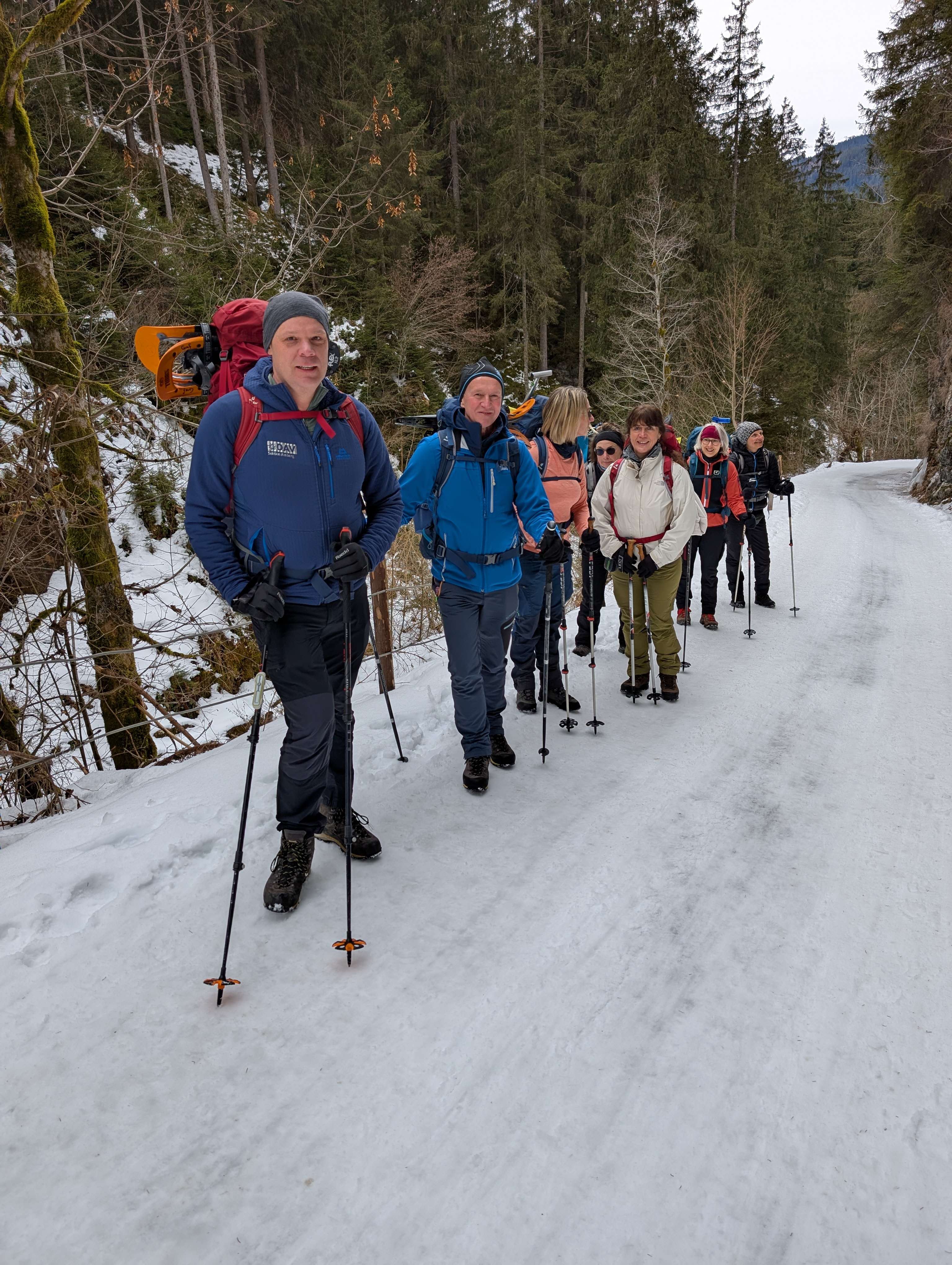 Pünktlich um 7:30 Uhr starteten wir an unserer Geschäftsstelle in Amberg zu unserer viertägigen Schneeschuhtour. Nachdem die Rucksäcke, Schneeschuhe und sonstige Ausrüstung sorgfältig im Vereinsbus verstaut waren, konnte es eigentlich losgehen – eigentlich.